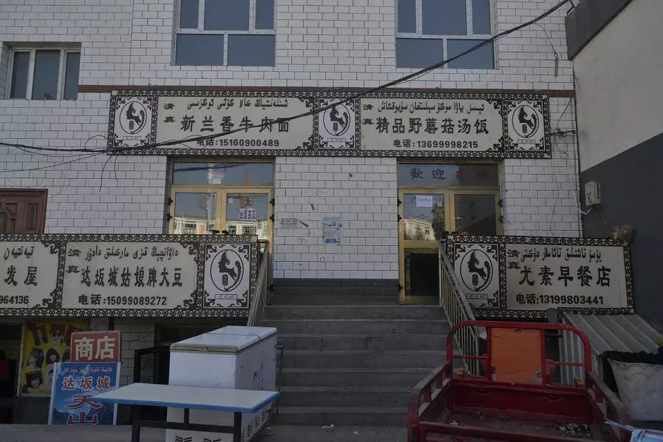 现在的达坂城是新城,只有一条主街道,开玩笑说要找一家达坂城姑娘做的面条吃,进城恍惚看见“达坂城姑娘”几个字,就停车走近,原来是“达坂城姑娘牌大豆”,这里好像大豆比较出名,街上大多是汉人在做生意,同伴去吃面条,我自己到旁边的农贸市场去逛,市场很萧条,卖一些炒熟的大豆,还有自制的酸奶,我买了一碗吃,碗看起来脏兮兮的,也不管,算体验生活吧,还有现烤羊肉串的,从挂着的羊腿上直接切下来羊肉串起来烤,很新鲜的样子,不过身上没带钱,肚子也实在装不下了,只好走开,市场卖的蔬菜和我们这里差不多,只是洋葱是白色的,这些天吃肉太多,每次都要吃一些生洋葱,甜甜的,一点都不辣。