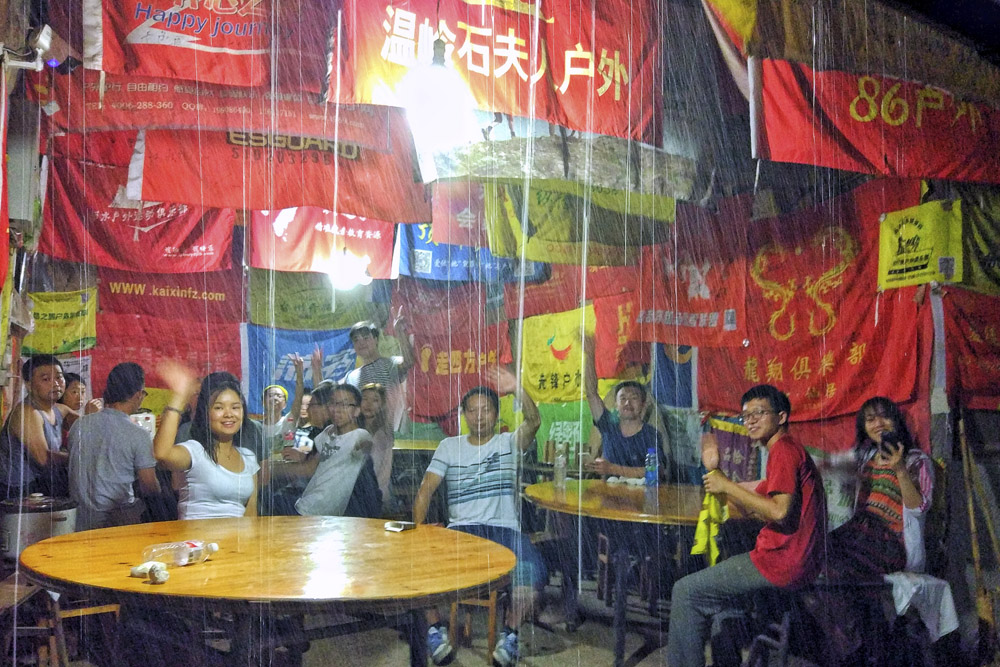 不过还是大雨来的快,搭一半就不得不撤离了,暴雨啊!
