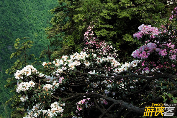 被峨嵋山佛家称为“桫椤”的杜鹃花全世界有900种,我国有600余种,峨嵋山境内已知的有30种。花期时节,次第绽蕾,黄、紫、白、蓝、粉红、深红、玫瑰红各色争艳。