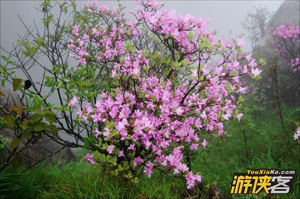 这里的杜鹃花开的不仅美,而且奇。最令人叫绝的,一是“十月怀胎”,每年七八月花谢了以后就会长出新的花蕾,直至来年五月再开花;二是变色,花初开的时候是红色,继而变为粉色,后又变为紫色,最后变为白色。每年五月底至六月上旬是三清山的杜鹃花期。每当杜鹃花开时节,香风十里,馥郁氤氲,苍茫山岳倍添妍态,蔚为奇观。24日我们去了三清山,无奈是雨雾天气,拍了一些远处的杜鹃,没能反映出三清山杜鹃的娇艳