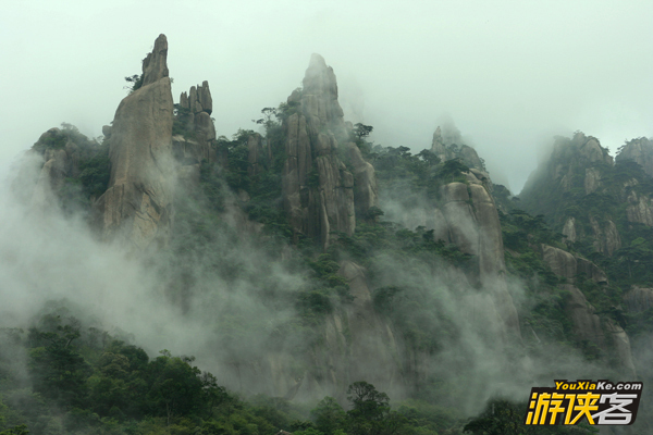 摄友和暴走族的最佳登山路线不是南、北索道上山,而是到玉山县后,直接乘车经三清山环山公路,到26公里外的“汾水”留宿(此地有农家旅馆供应食宿)。此地是步行上山的最短路程:顺着山沟爬上山腰,就到“司春女神”和“巨蟒出山”景点。