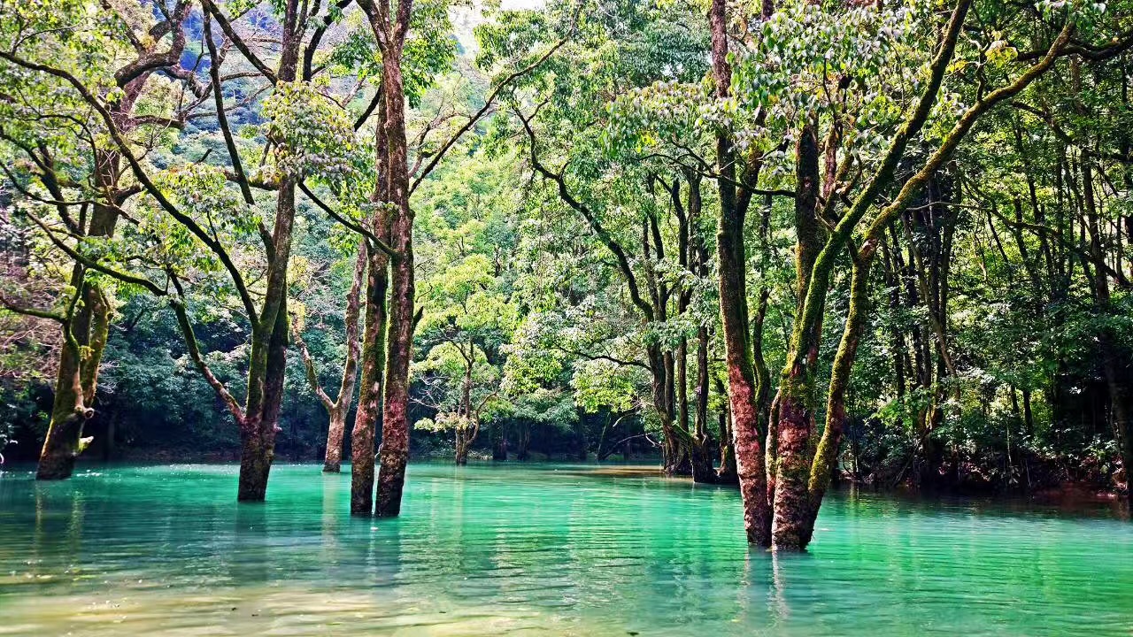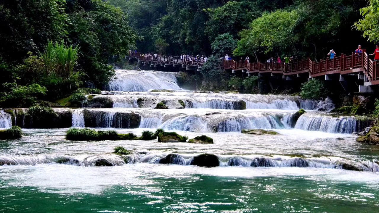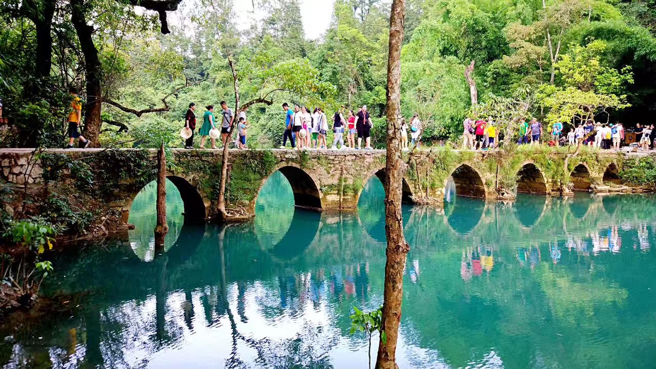 一早我们乘车出发,前往我们游览的第一站:位于贵州省黔南布依族苗族自治州荔波县西南部的荔波小七孔风景区,小七孔景区在宽仅1公里、长12公里的狭长幽谷里,集洞、林、湖、瀑、石、水多种景观于一体,玲珑秀丽,令游客耳目常新,有“超级盆景”的美誉。现已经向游客开放的景点有铜鼓桥、小七孔古桥、涵碧潭、拉雅瀑布、68级跌水瀑布、野鸭池、龟背山、一龙戏九珠、飞云洞、野猪林、水上森林、天钟洞、鸳鸯湖、卧龙潭、卧龙河生态长廊漂游等。风光尤胜九寨沟。