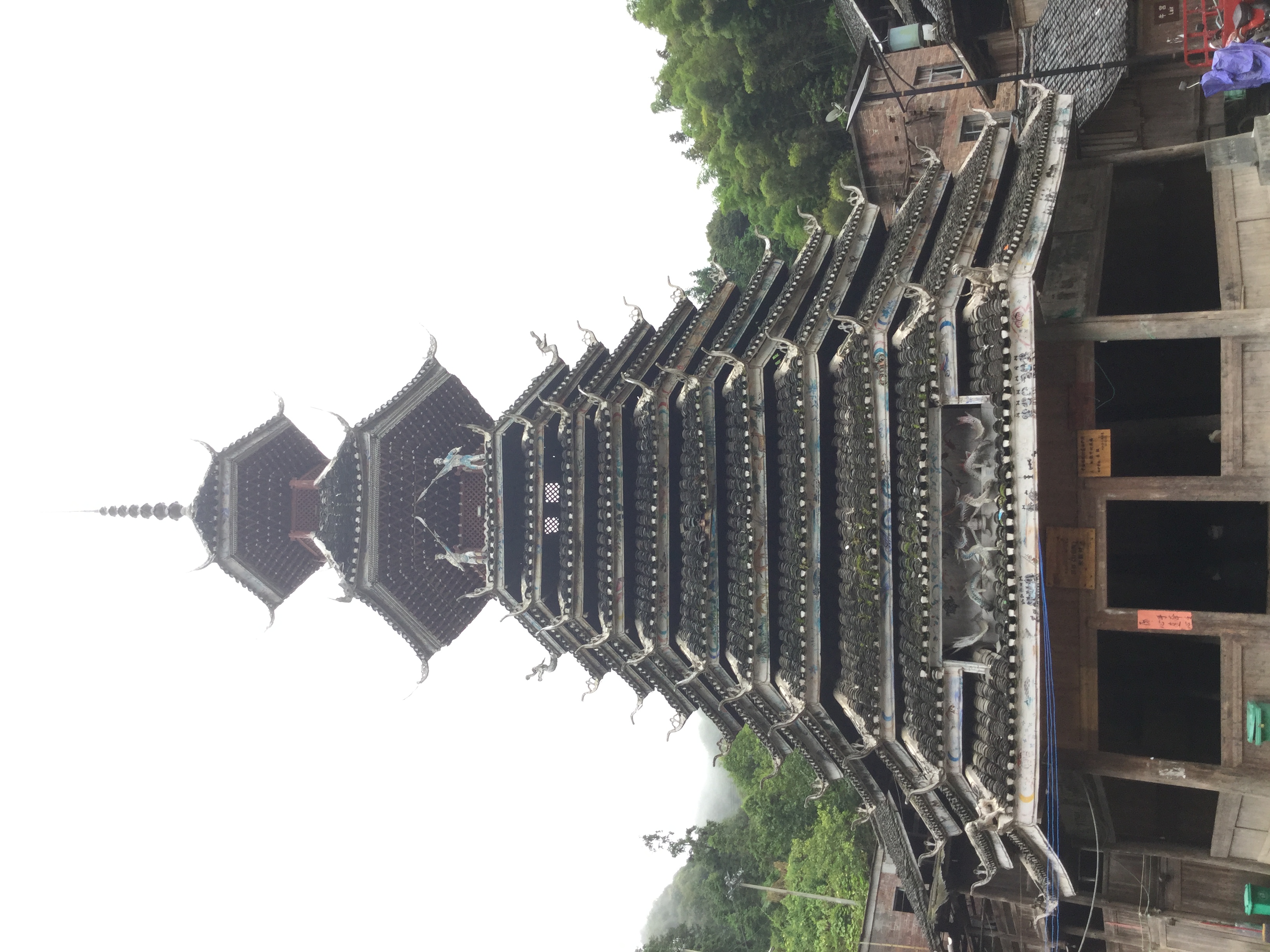 有六百多年历史的高增侗寨有三座鼓楼,分属上寨、下寨和坝寨三座寨子。其中两座17层,高近30米,另一座13层,高20多米。三座鼓楼都有醒目的攒金宝顶,全部用柱枋凿穿,相互交插而成,不用一钉一铆,工艺精湛之至。