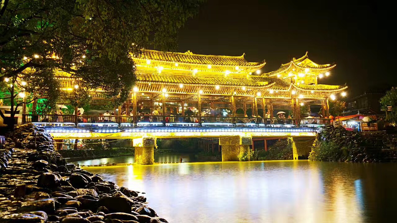 行程的第三天,我们来到美丽的侗族村寨--银潭侗寨。银潭是一个神奇而富有诗意的侗寨。该村距从江县城20公里,从江-谷坪公路从寨边经过。全村共323户,1669人,寨子周围青山环抱,古树参天,栉次鳞比的民居,杉木结构的吊脚楼依山傍水,13层鼓楼鹤立寨中,一条清澈的小溪穿寨而过,婉延奔流,村寨周围坐落有序的稻田和溪流,在阳光照耀下反射出一片银光,故名银潭。这里民族风情原始古朴、独特,有金道抬官人、"腊汉""腊面"(侗语称男女青年)在红豆杉树下荡秋千传情等习俗。民族节日众多,主要有侗年、六月六月、牯藏节等节日。