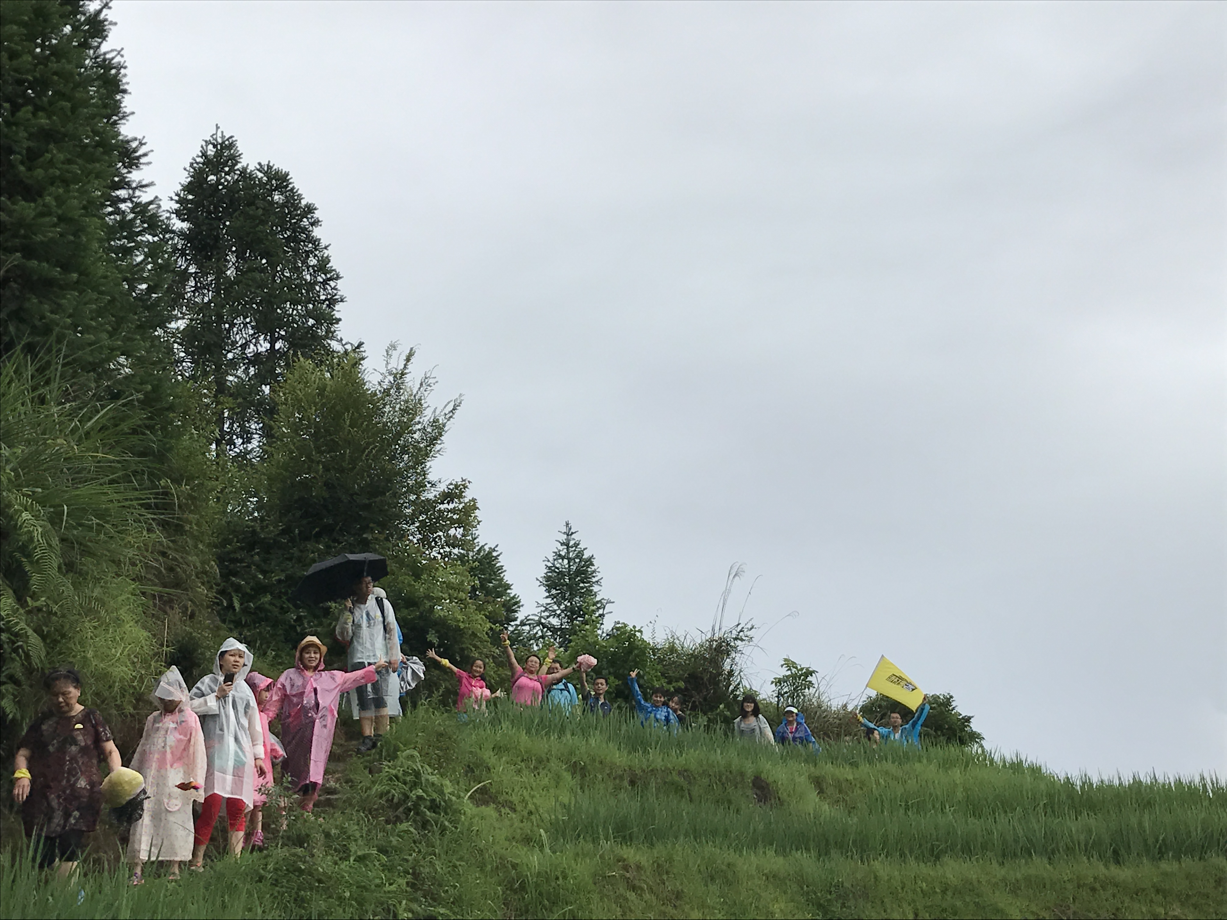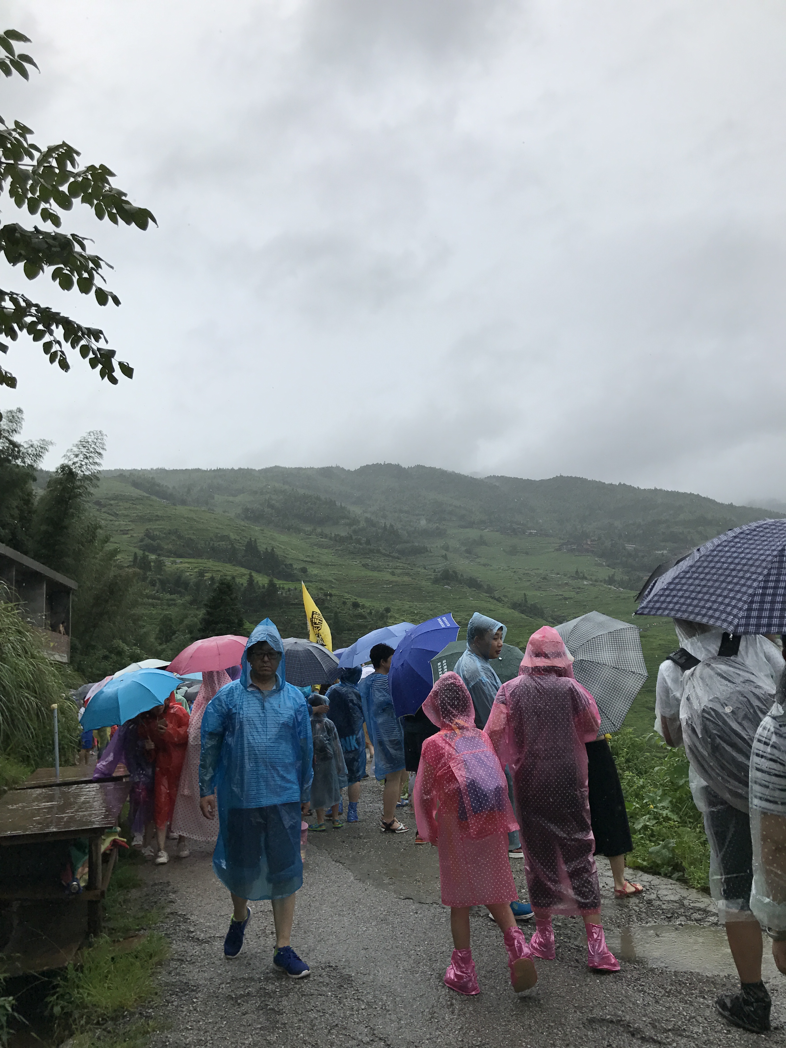 出发去龙脊梯田了,下雨导致去平安寨的路塌方,我们只能从古壮寨走路到平安寨,原计划50分钟的路程,因为下雨路滑有的路被雨水冲断了,最后走了两个多小时才到望脊轩酒店。