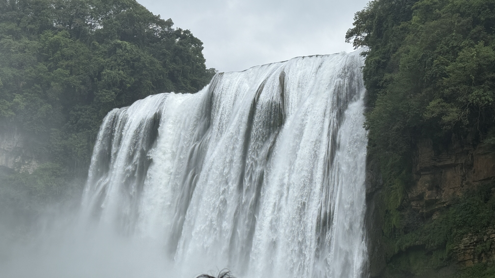 出发!拖着塞满童趣与未知的行李箱,我们降落在凉爽的贵阳。夜宿林城大酒店的小窗边,俯瞰城市渐次亮起的灯火,明日黄果树的水雾仿佛已提前润湿了窗棂。 水雾仙境第一站:黄果树的雷鸣与星河 清晨大巴轻快奔赴黄果树。陡坡塘瀑